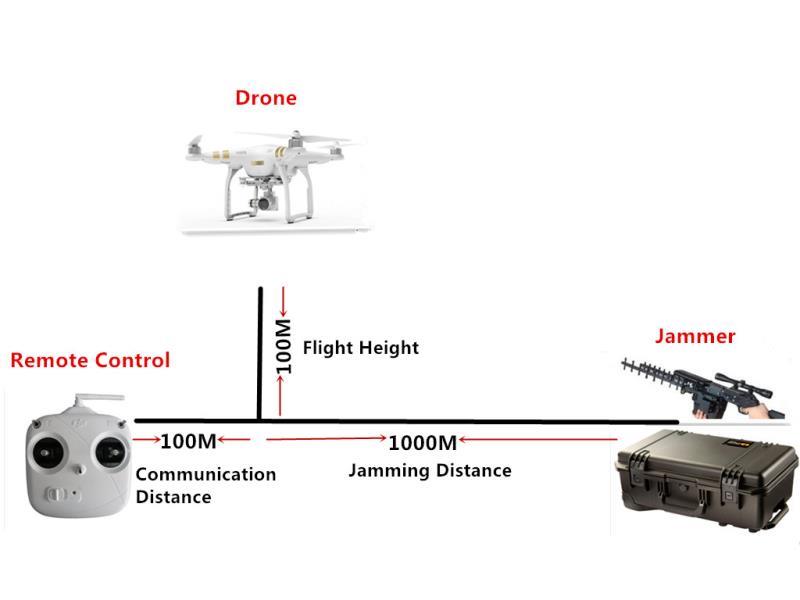 Specifically for visible drone interference, the effective distance is about 100 meters away from the drone and the interference is more than 1500 meters.